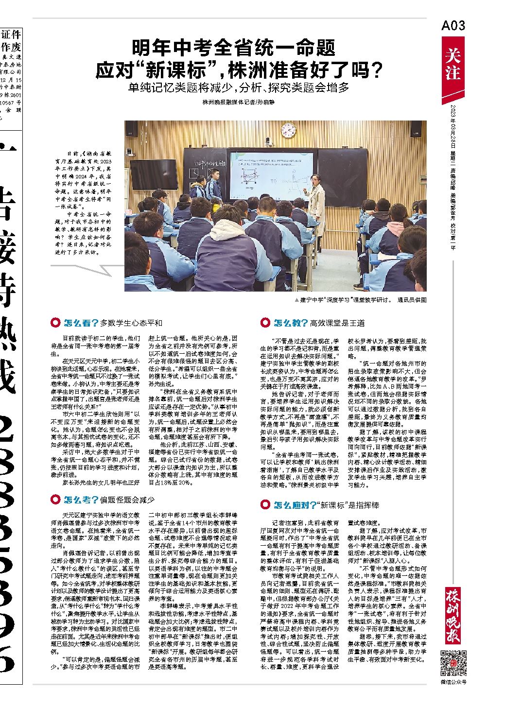 明年中考全省统一命题应对“新课标”,株洲准备好了吗?