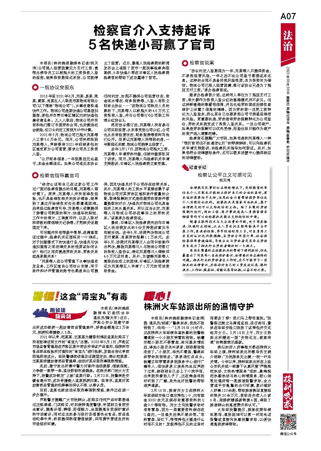 检察官介入支持起诉5名快递小哥赢了官司