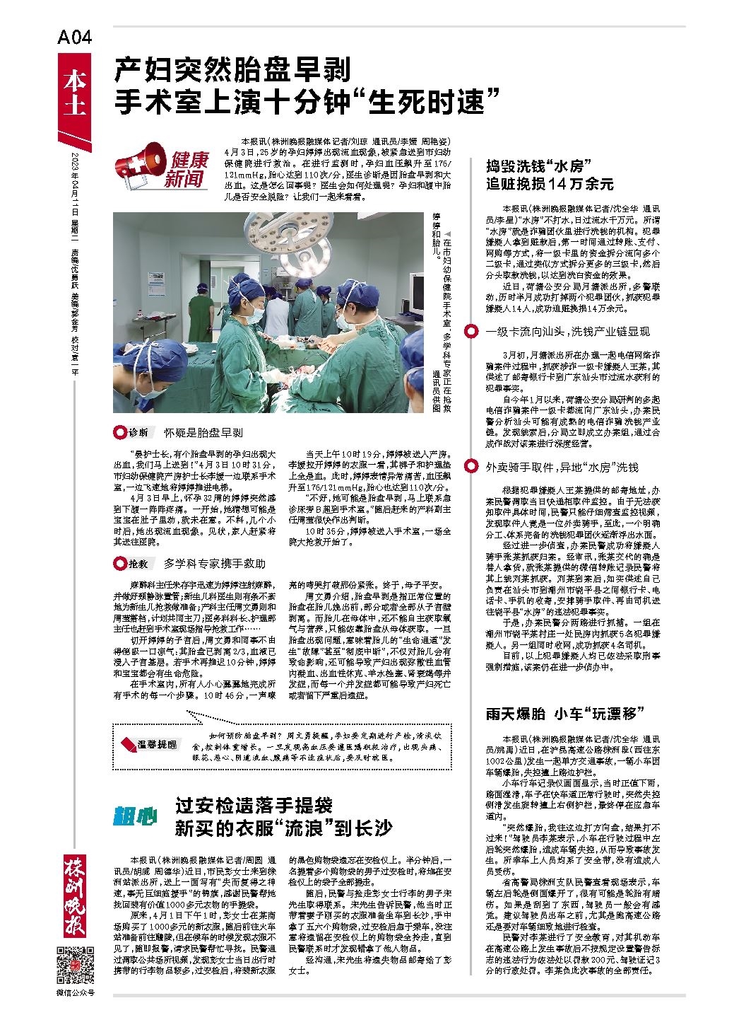 产妇突然胎盘早剥 手术室上演十分钟“生死时速”