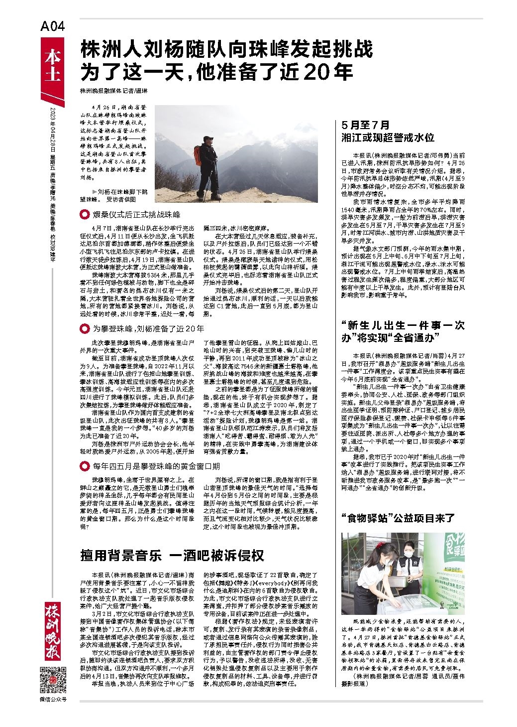 株洲人刘杨随队向珠峰发起挑战 为了这一天,他准备了近20年