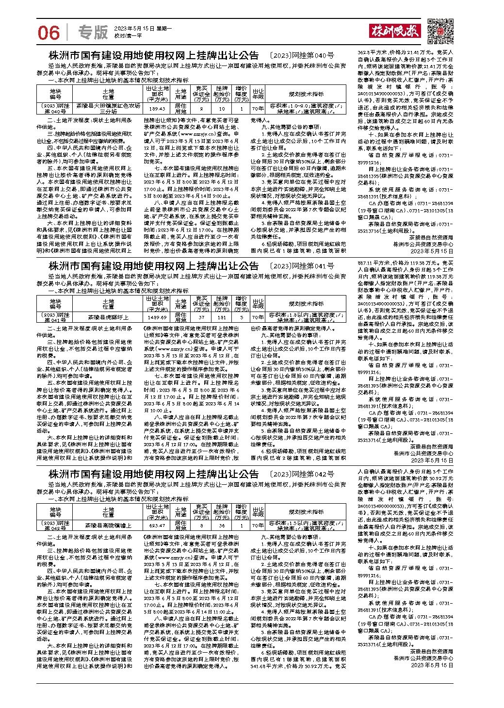 株洲市国有建设用地使用权网上挂牌出让公告 〔2023〕网挂第040号