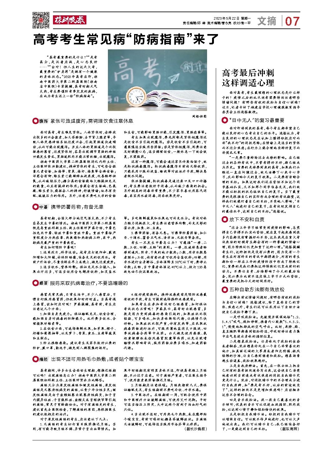 高考考生常见病“防病指南”来了