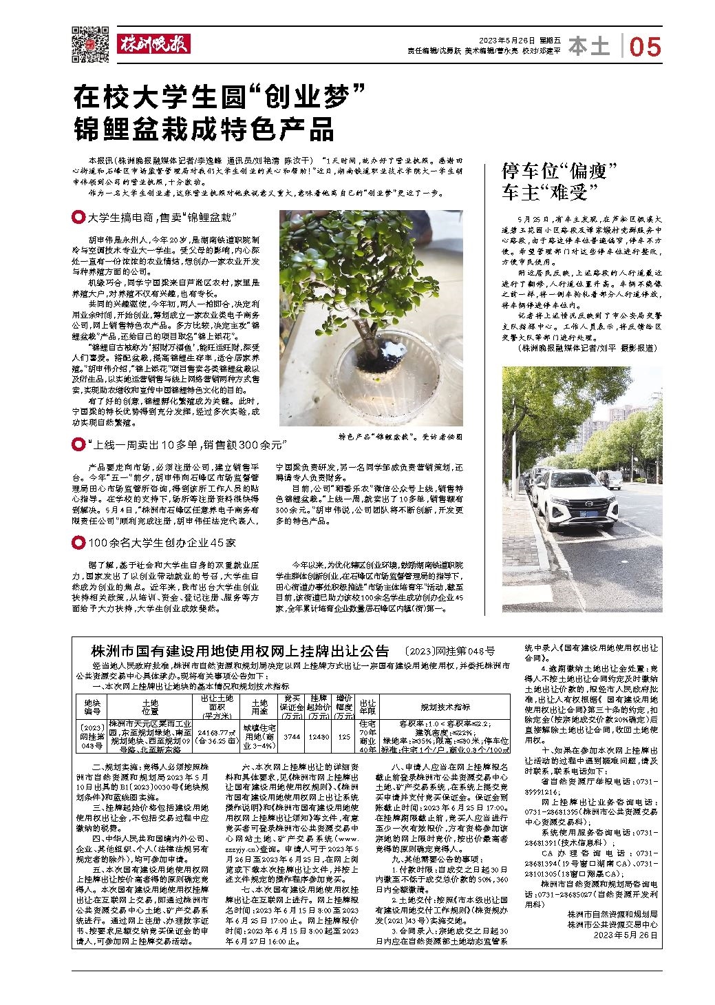 在校大学生圆“创业梦” 锦鲤盆栽成特色产品