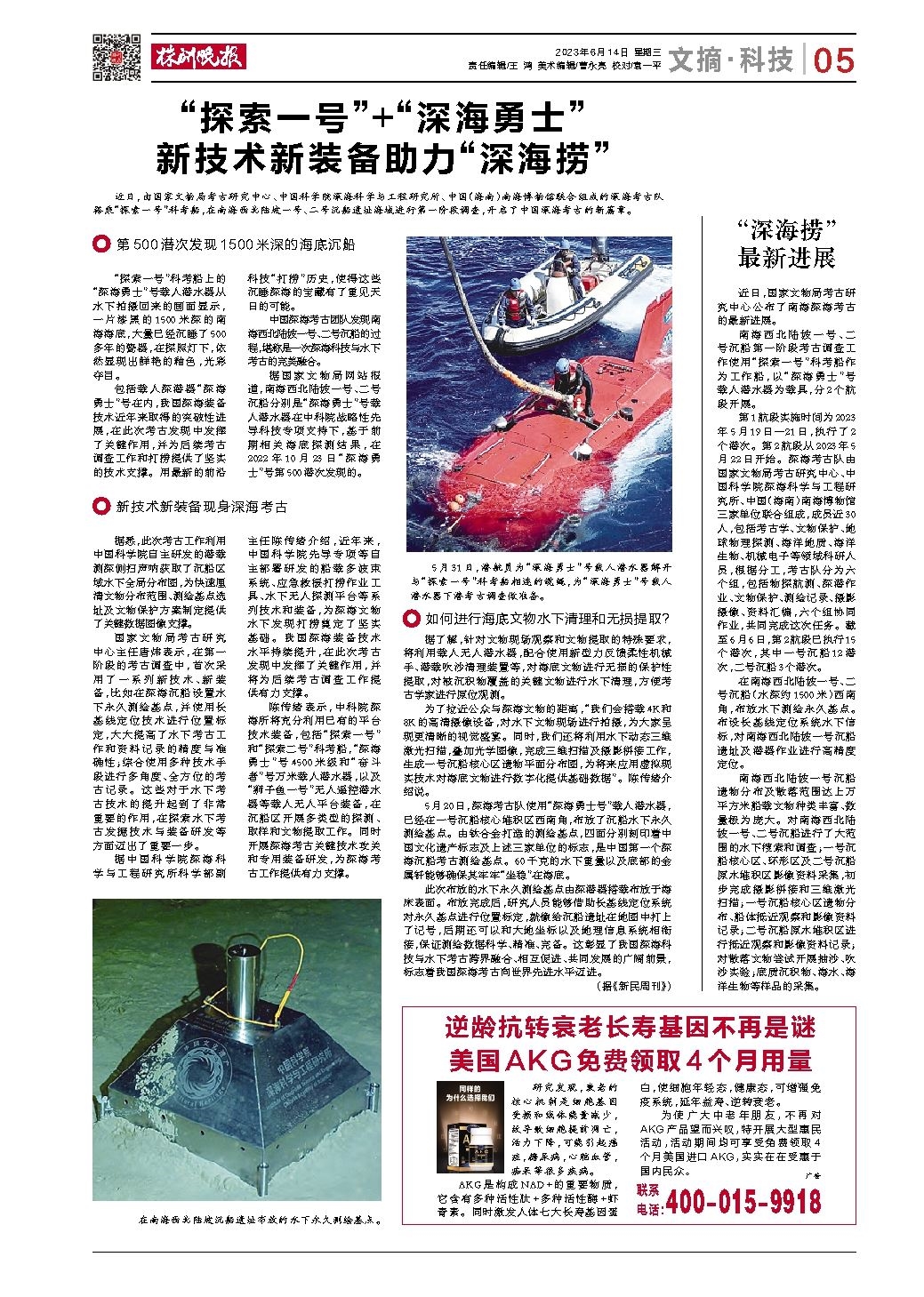 “探索一号”+“深海勇士” 新技术新装备助力“深海捞”