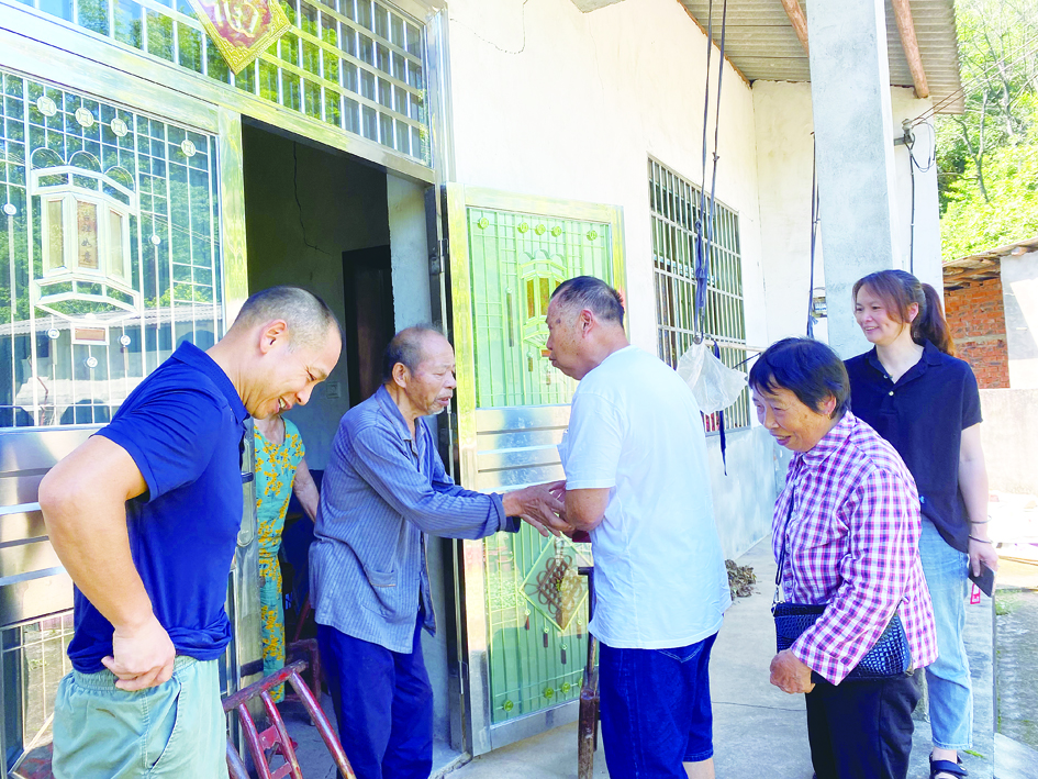 77岁周子乔(白衣)上门感谢60年前的救命恩人叶梅青。 通讯员 供图