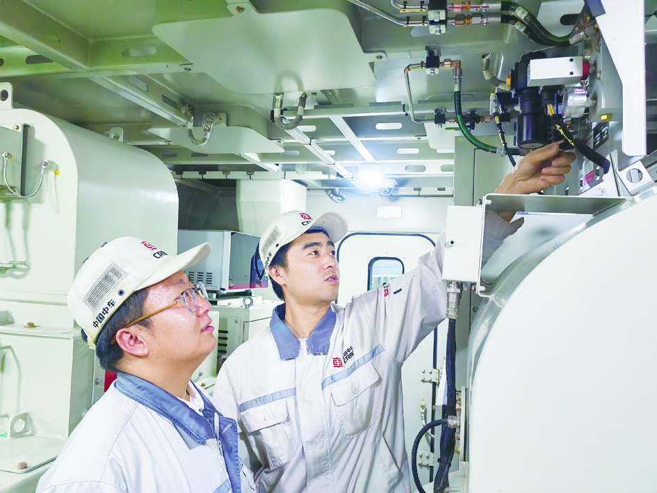 中车株机的员工正在高原“复兴号”上检查。通讯员 供图