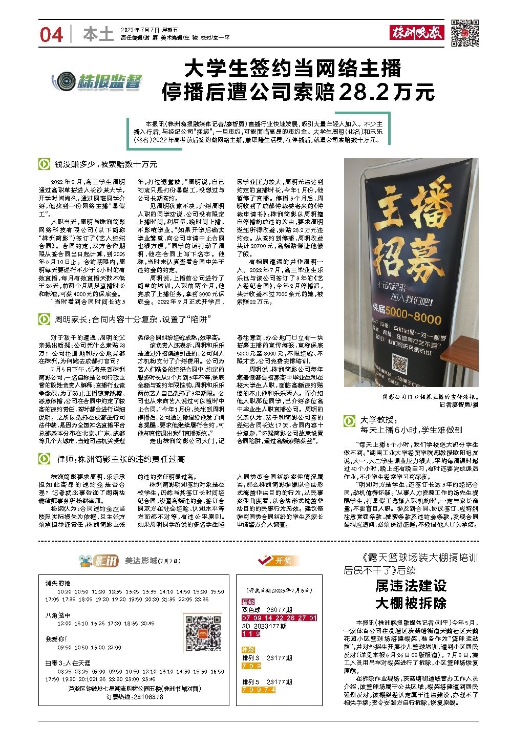 大学生签约当网络主播 停播后遭公司索赔28.2万元