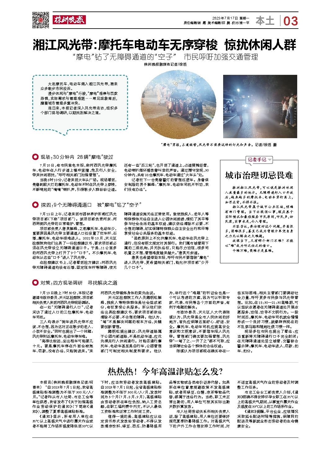 湘江风光带:摩托车电动车无序穿梭 惊扰休闲人群