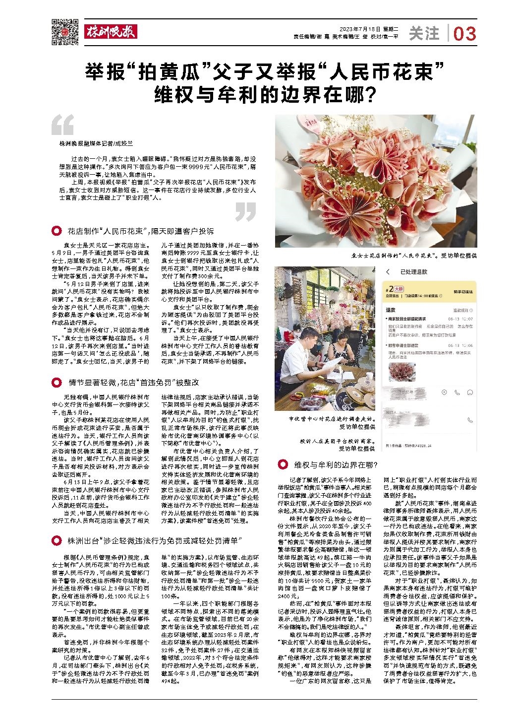 举报“拍黄瓜”父子又举报“人民币花束” 维权与牟利的边界在哪?