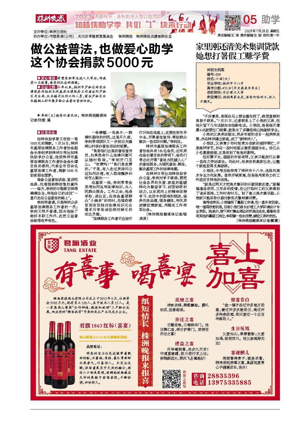 做公益普法,也做爱心助学 这个协会捐款5000元