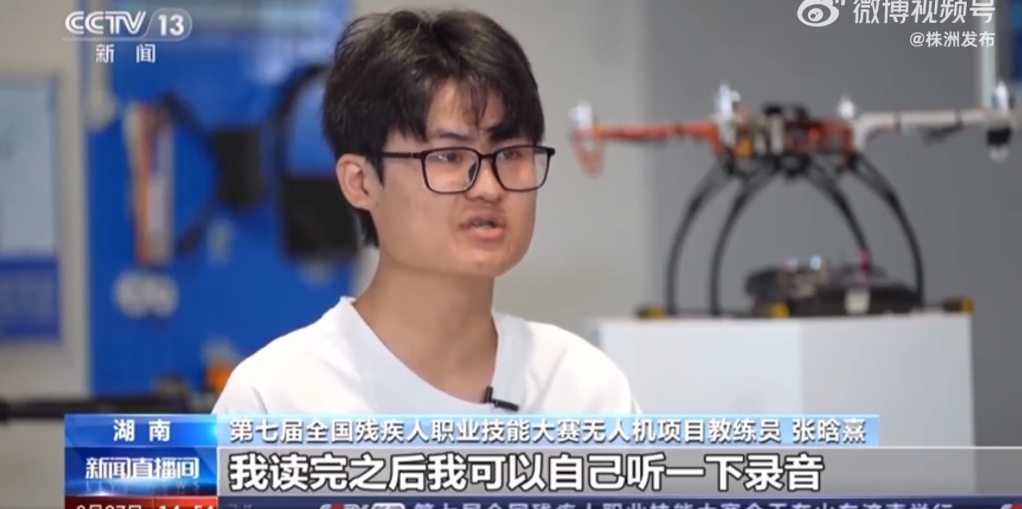 过去的三年,身患言语类残疾、年仅21岁的株洲小伙张晗熹,完成了从无人机新手到国家级比赛冠军的飞跃,还带出了国赛冠军徒弟。他是如何做到的?近日,央视《新闻直播间》报道了张晗熹的励志故事。