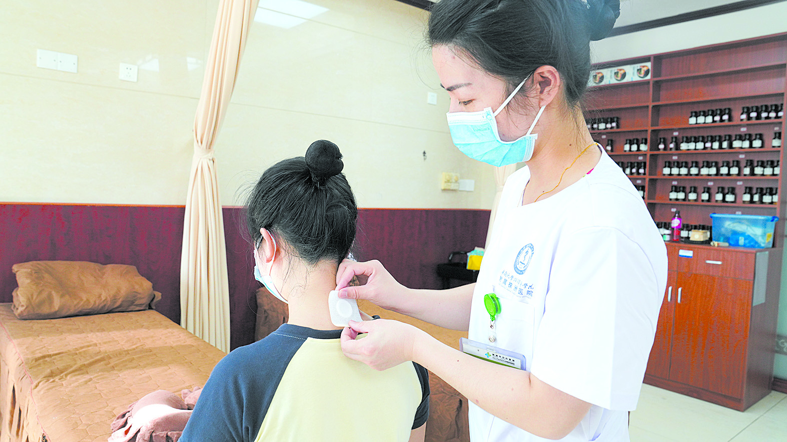 在市中心医院中西结合科,市民正在贴“三伏贴”。 通讯员/供图