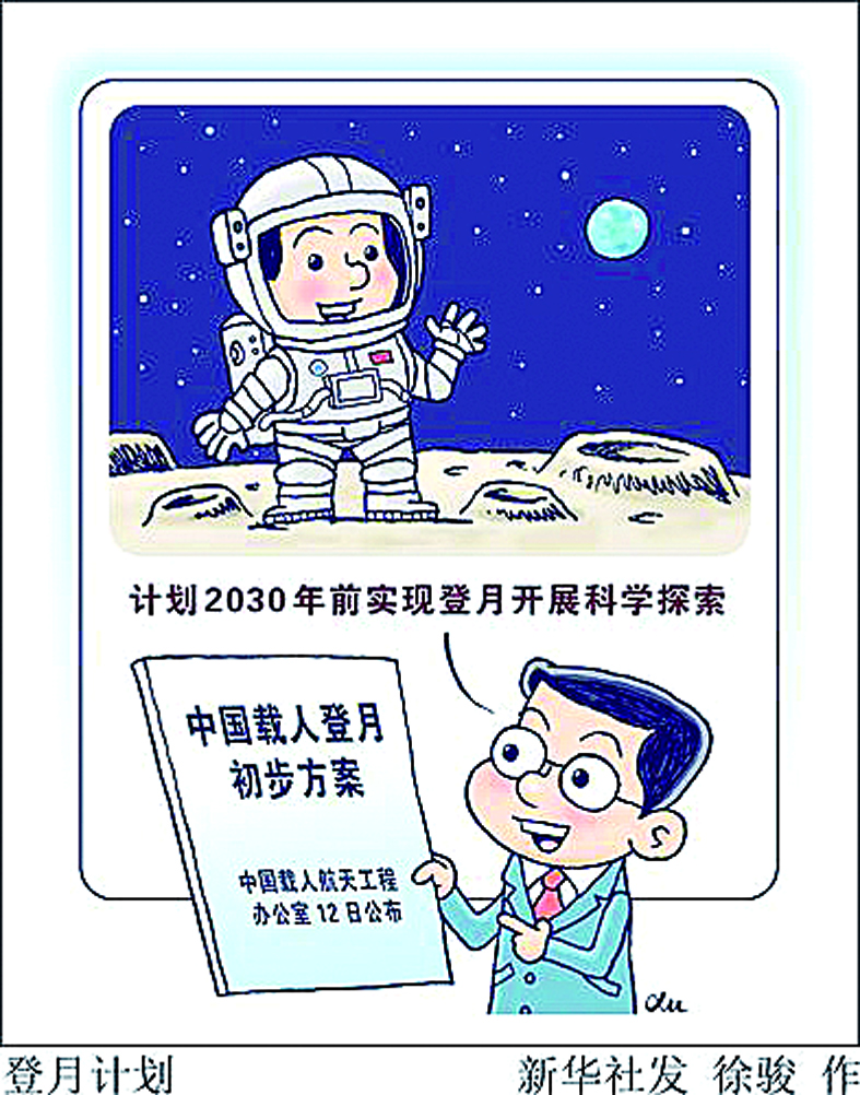 为完成这项任务,我国科研人员正在研制长征十号运载火箭、新一代载人飞船、月面着陆器、载人月球车等装备。