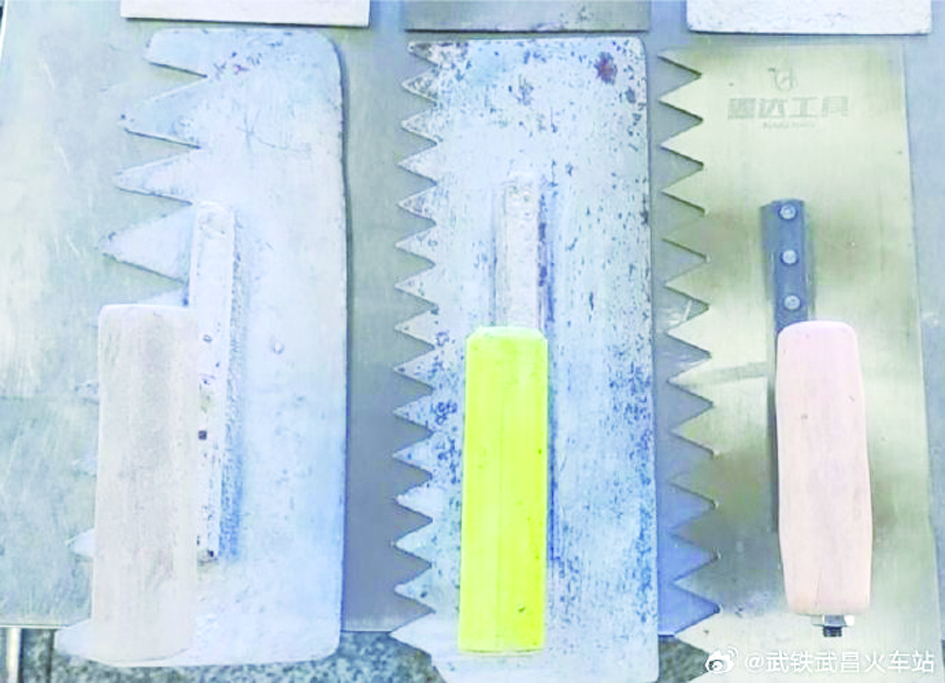 据武昌火车站官方微博消息,针对7月11日“武昌火车站禁止外出务工人员携带瓦刀进站乘车”的视频,中国铁路武汉局集团有限公司迅速展开调查。经核实,7月9日17:49分,视频中的当事人经武昌车站4号安检通道进入,安检执机员发现该旅客的行李物品内有疑似禁限物品,经开包核验,包内携带了3把带有锯齿的抹泥刀(如图一),并非网传视频中所描述的瓦刀(如图二)。