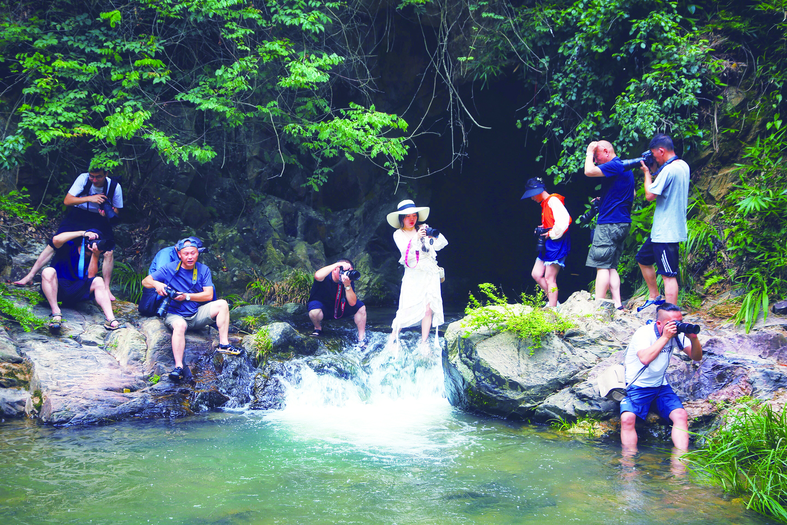 7月15日,渌口区淦田镇八斗村仙人洞,参加“和美乡村我来拍”系列活动的摄影师们来到这里采风,感受清凉一夏。