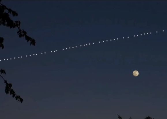 这次星链是7月10日发射升空的,随着时间的推移,星链就会整个散开。散开前就是大家看到的一条线状态,大概方向是从西北向东南飞。