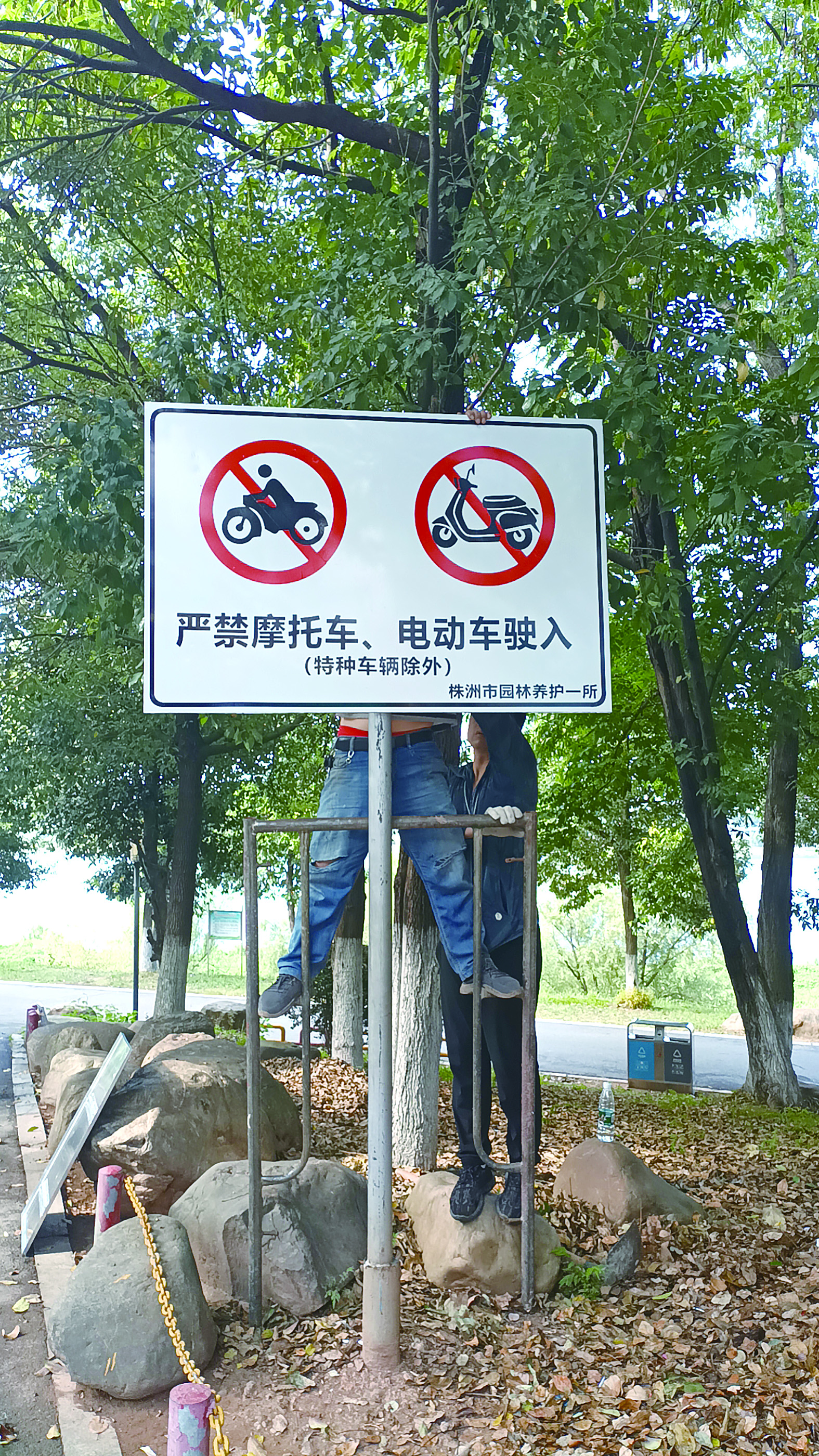 本报讯(株洲晚报融媒体记者/徐滔) 7月17日,本报3版刊发《湘江风光带:摩托车电动车无序穿梭 惊扰休闲人群》。昨日,市园林养护所湘江风光带项目部(下称“项目部”)高度重视,立即整改,采取一系列措施,制止摩托车、电动车驶入风光带。