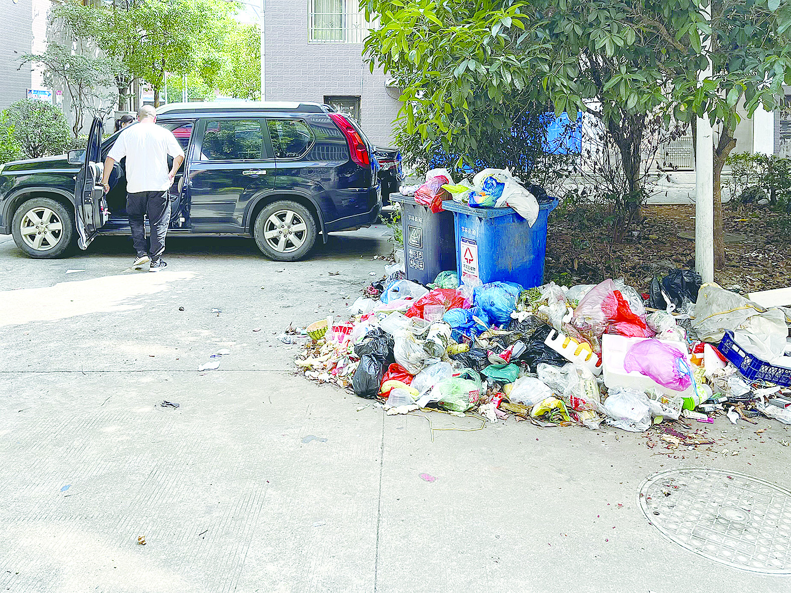 垃圾成堆,未及时得到清理。记者/刘平 摄