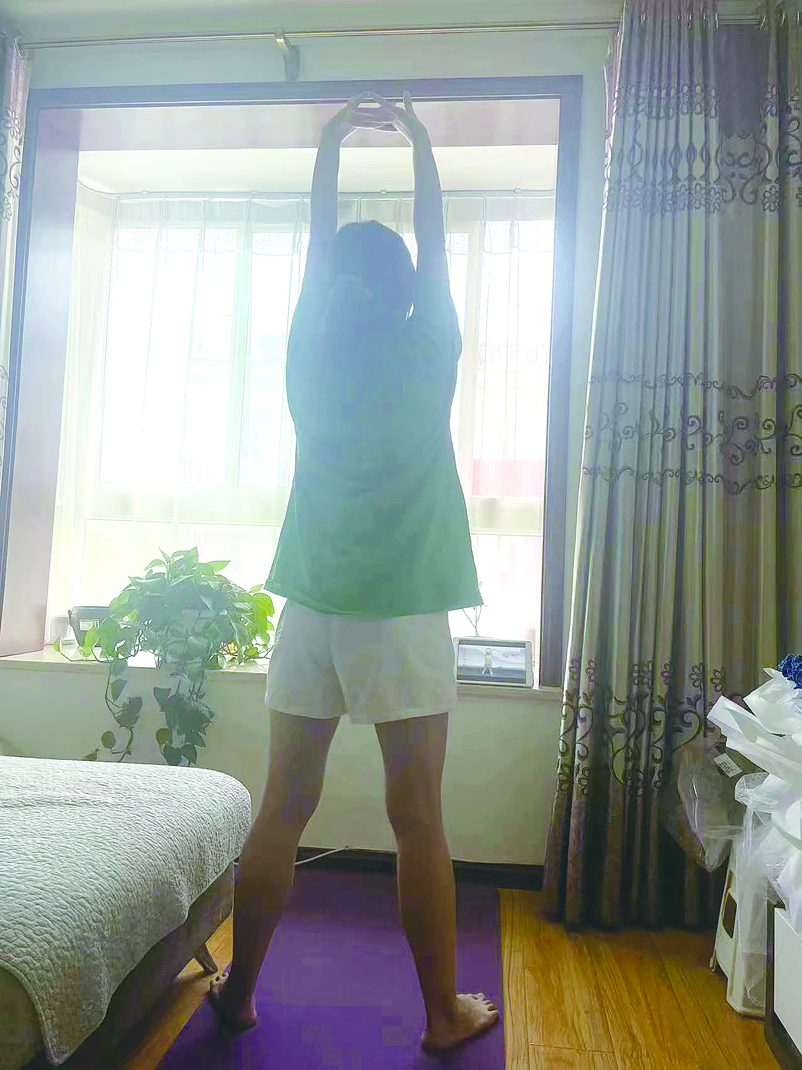 一个月前朱静宁患上了流感,康复后一直感到气血不足没什么力气,无法剧烈运动。无意间看到综艺节目里明星在练八段锦,就跟着“入坑”了。令她比较意外的是,练习八段锦一段时间后还有了额外的收获,在缓慢的动作和节奏中她感受到了踏实感,工作压力和焦虑明显减少了。