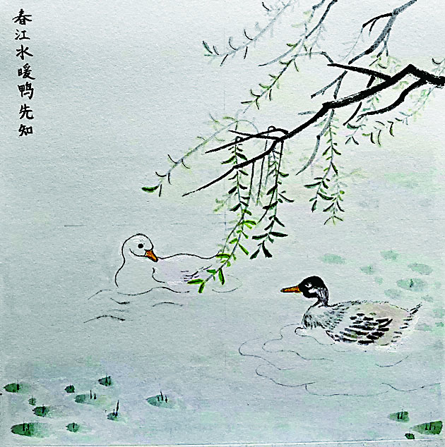 花鸟画《春江水暖鸭先知》 (贺春燕)