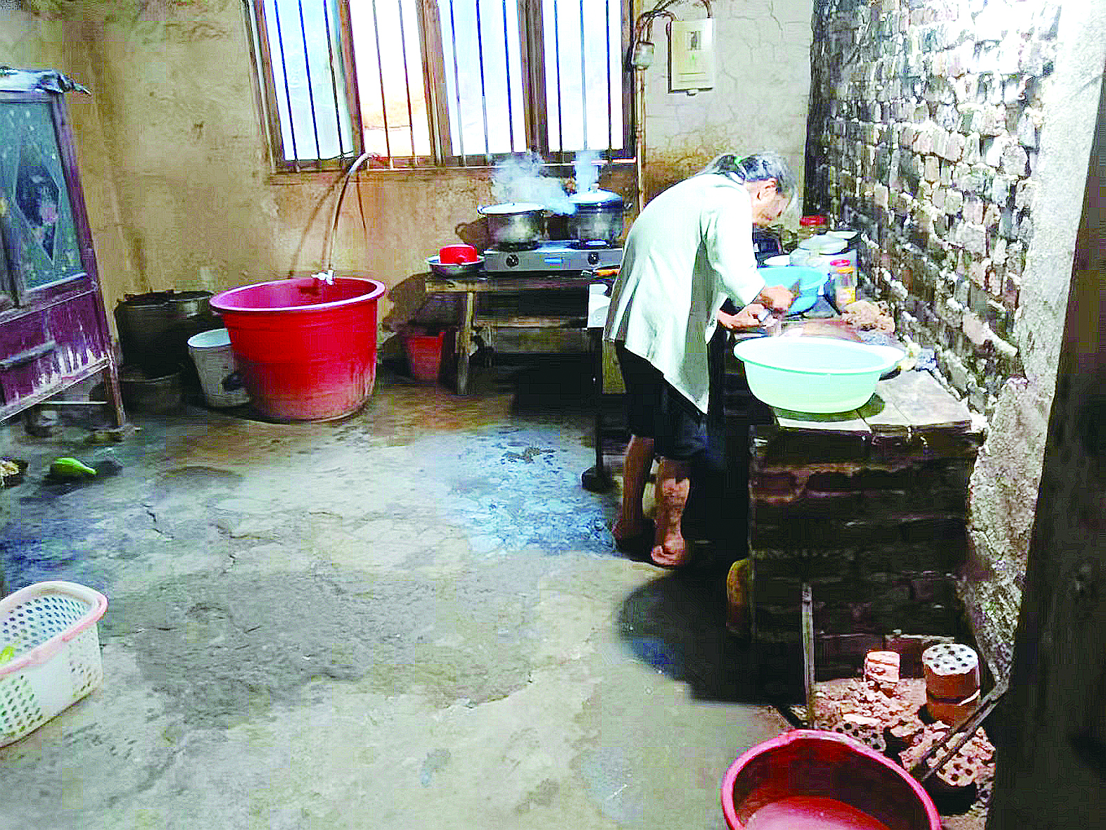 小宇的奶奶在简陋的厨房里忙碌。 受访者供图