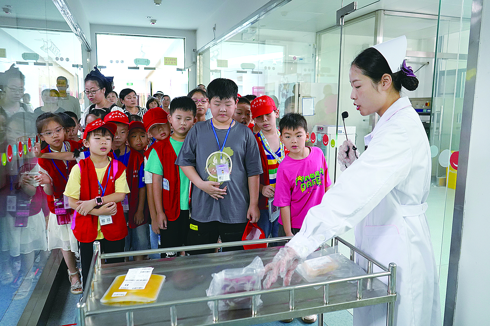 “人体有多少血液,一袋血是经过怎样的‘旅程’?”“为什么还有黄色的血液?”“什么又是熊猫血呢?”……带着有关血液的疑问,同学们有序地参观了供血室、机采室、成分科、检验科、科普展室等重要科室,详细了解了血液从采集到制备、检测、储存、发放的全过程。
