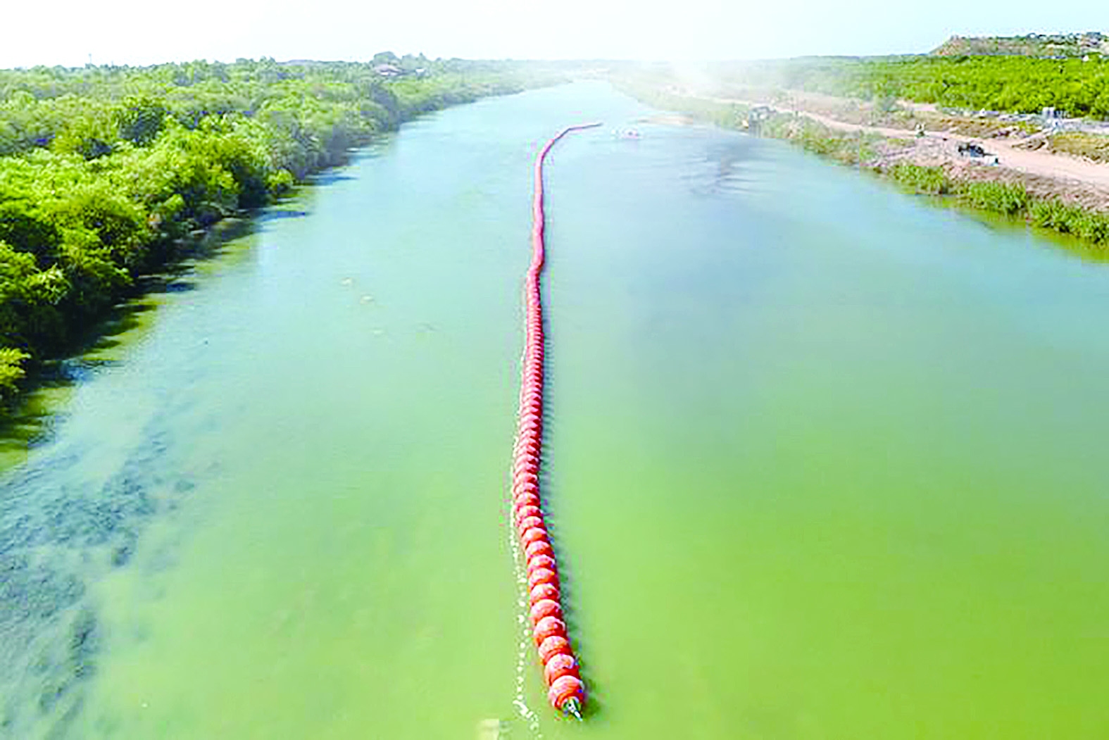 浮标屏障被安装在里奥格兰德河中央。