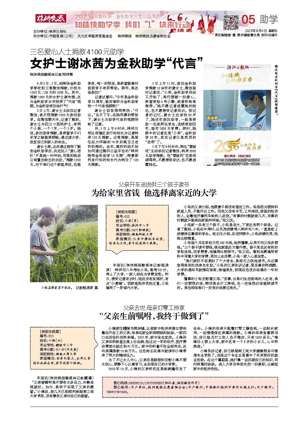 女护士谢冰茜为金秋助学“代言”