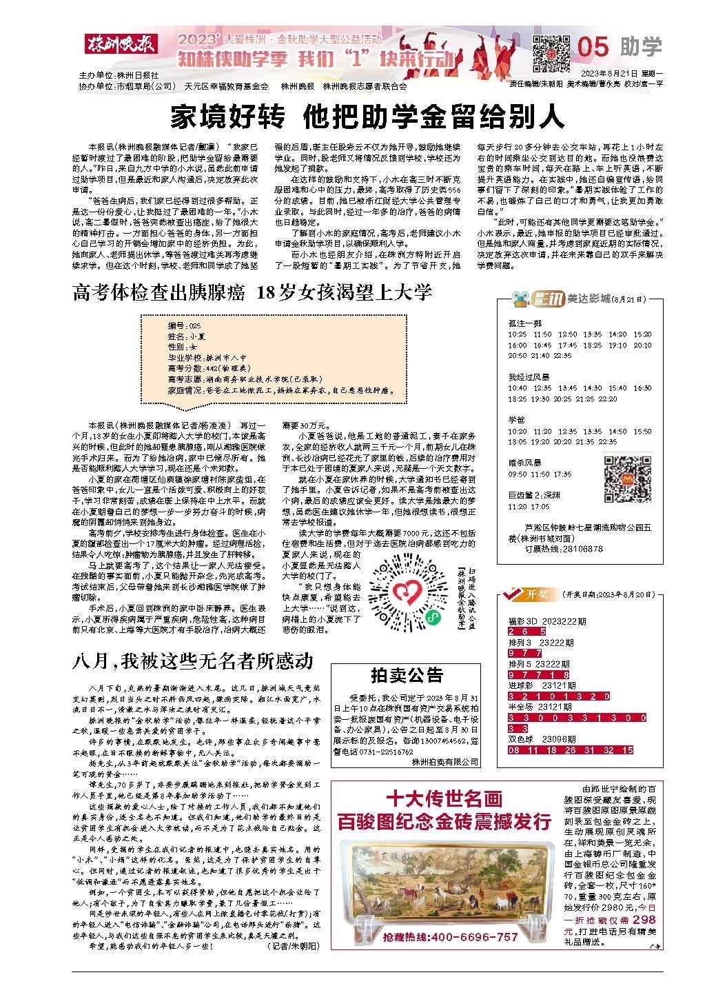 高考体检查出胰腺癌 18岁女孩渴望上大学