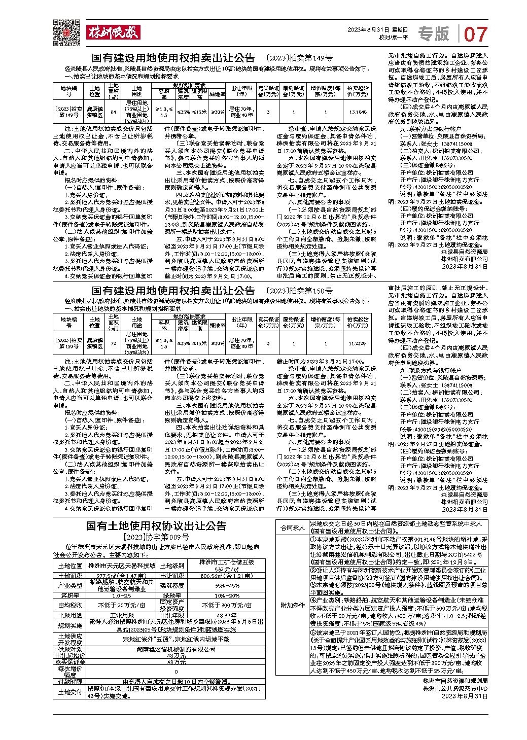 国有建设用地使用权拍卖出让公告 〔2023〕拍卖第150号