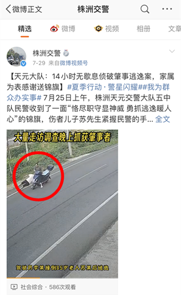 7月21日,85岁的苏老在天元区雷打石镇伞铺饭店路段散步时,被身后驶来的电动车撞倒并不省人事,事故发生后电动车驾驶员李某逃离现场。天元交警大队调取大量监控于晚上9时将李某抓获,李某因为涉嫌肇事逃逸将被拘留,目前案件正在进一步处理当中。