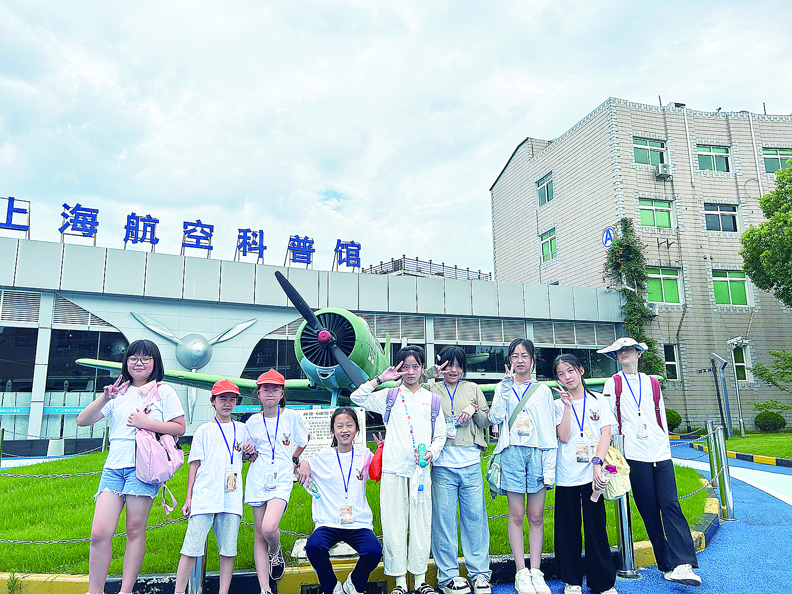 “小侦探”们在上海航空科普馆合影。颜家萍/摄