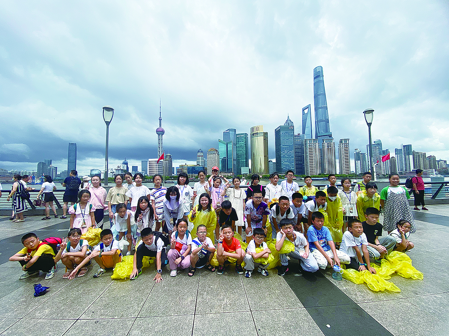 “小侦探”们在上海外滩合影留念。颜家萍/摄