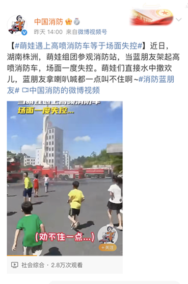 近日,株洲一群萌娃组团参观消防站,当蓝朋友(消防员)架起高喷消防车,场面一度失控。萌娃们直接水中撒欢儿,蓝朋友拿喇叭喊都一点叫不住啊!