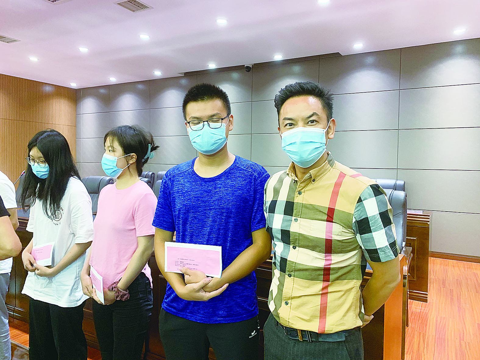 吴斌(右一)与资助的孩子在一起。受访者/供图