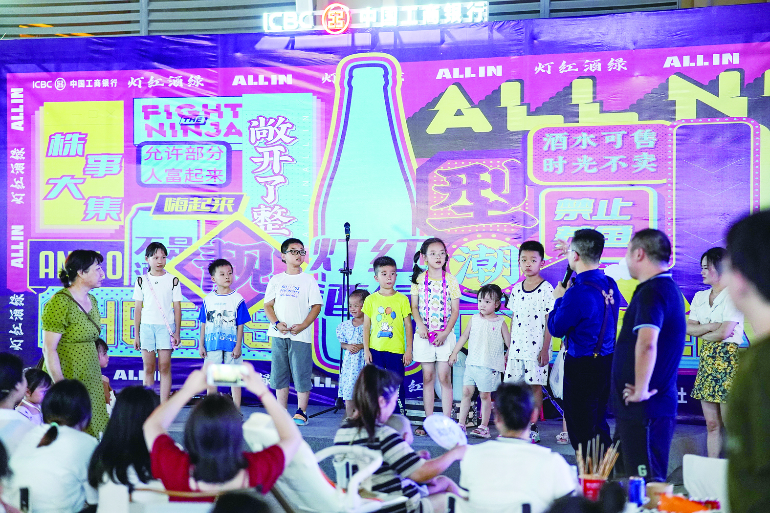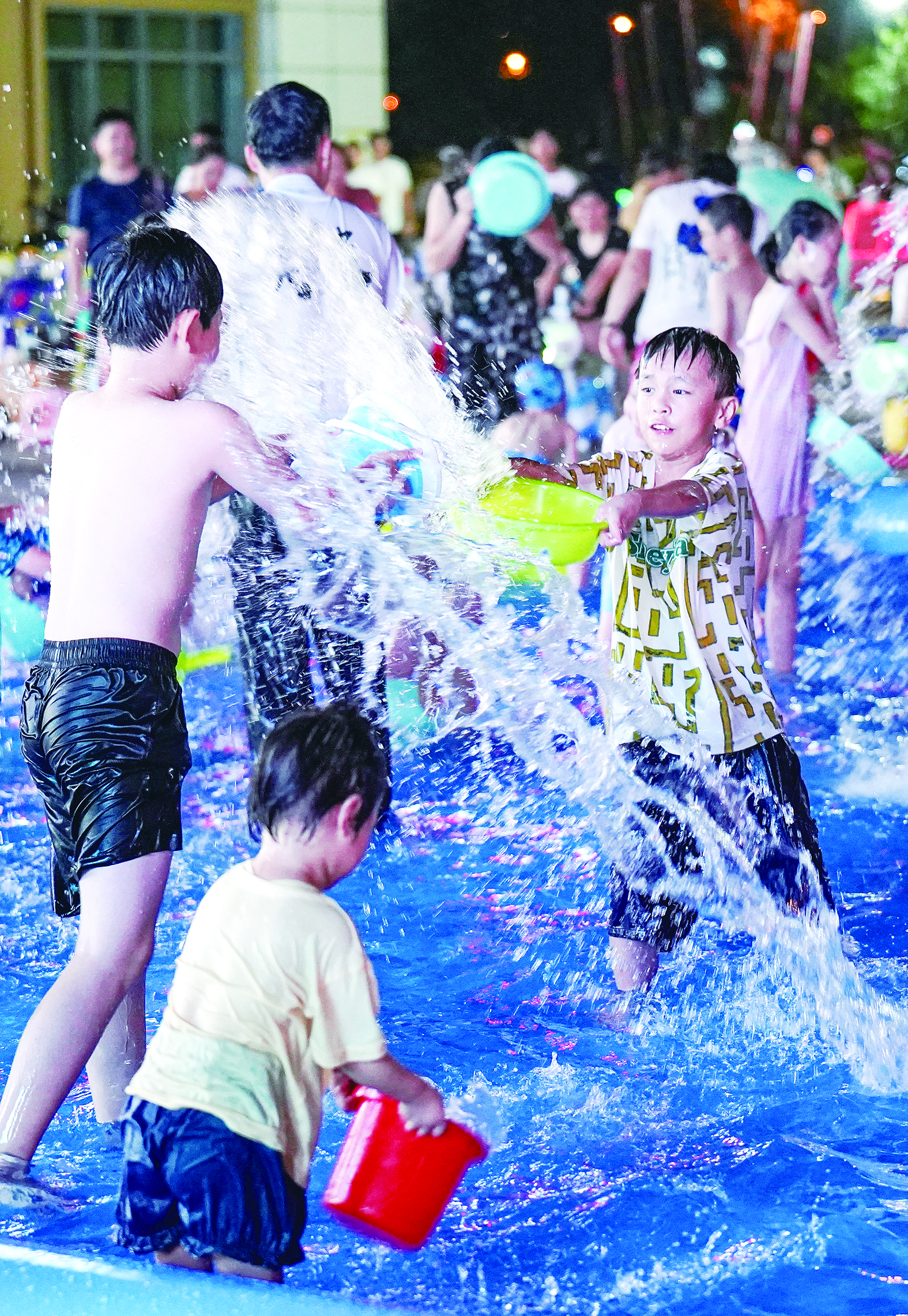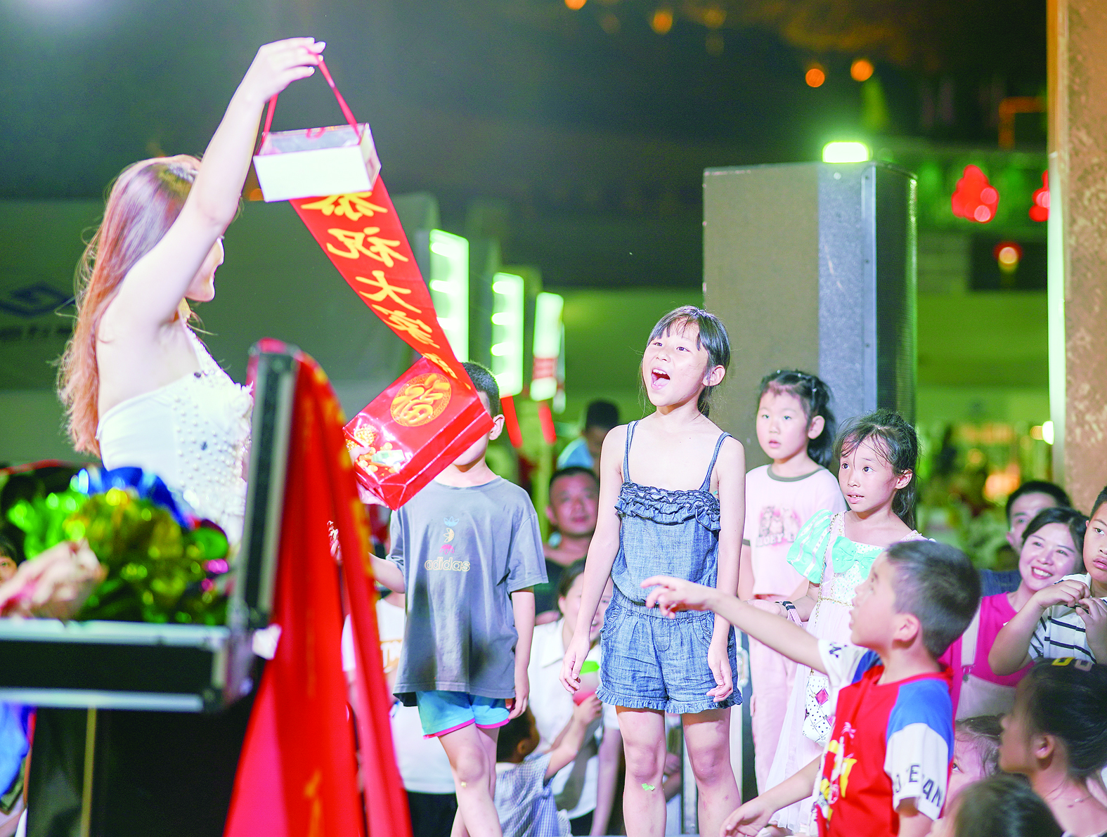 孩子们参与尚格广场·株事大集夜市的泼水游戏。