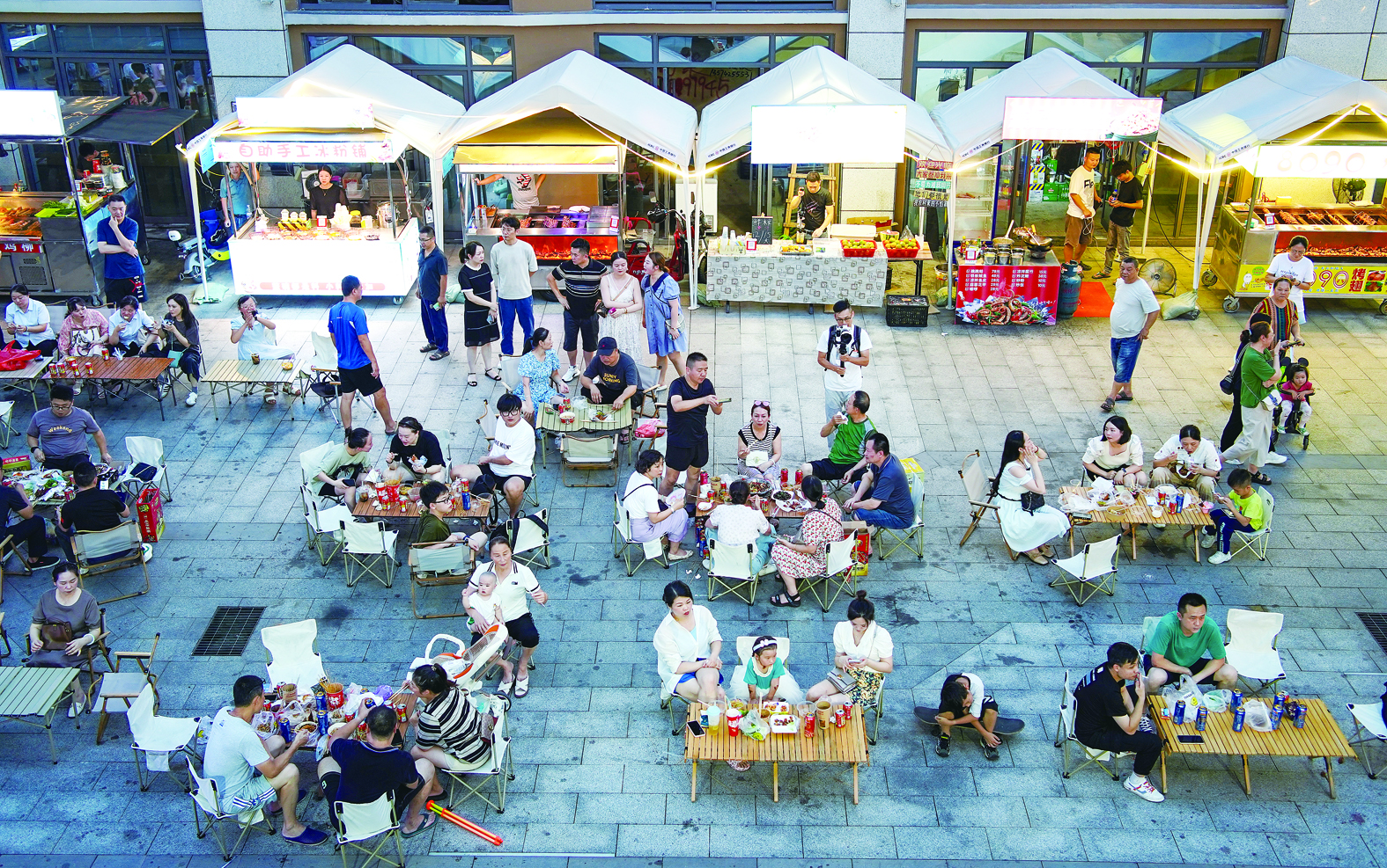 市民在尚格广场·株事大集夜市上休闲消暑。