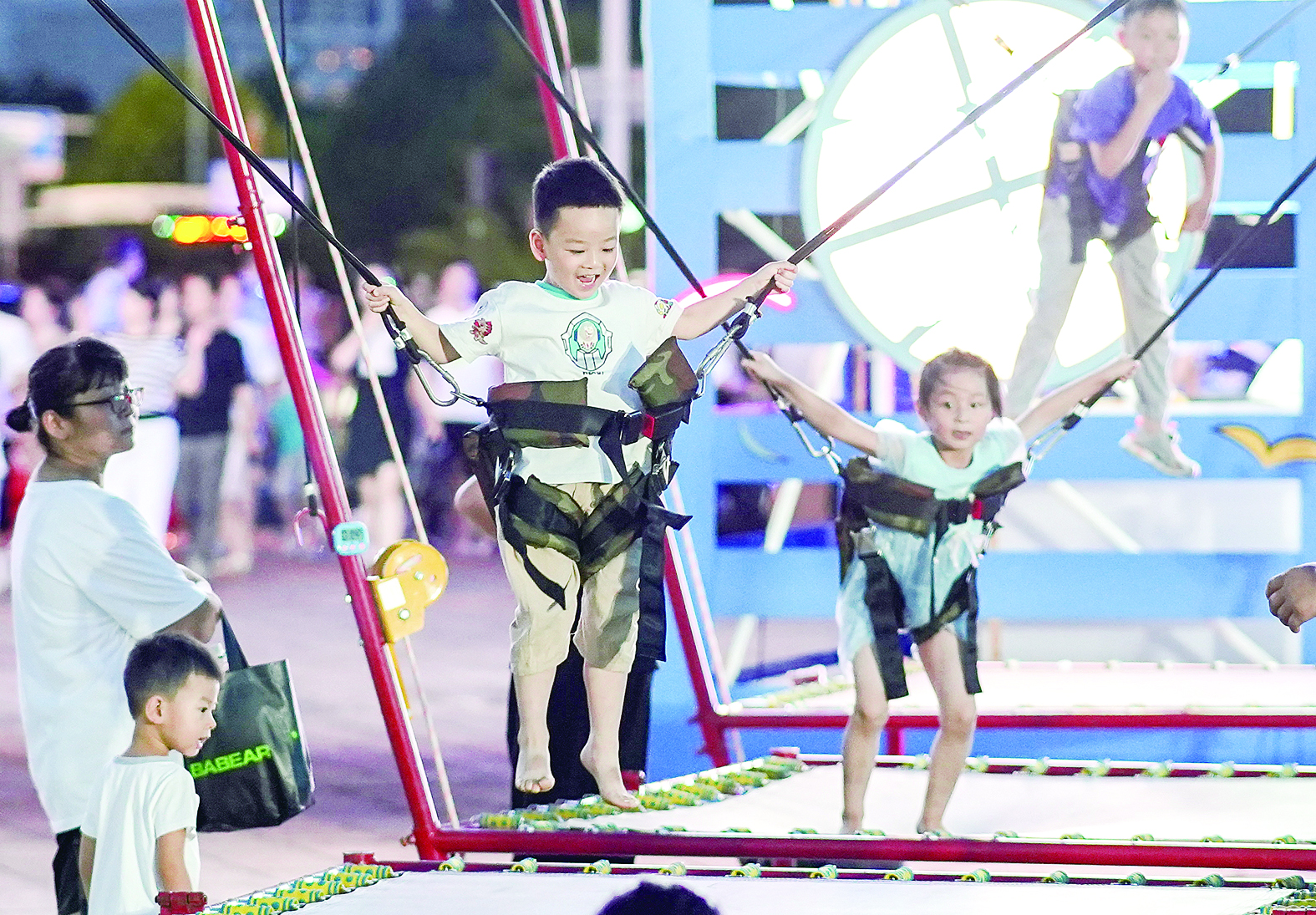 在市体育中心夜市,儿童游乐设施打造了一个快乐的世界