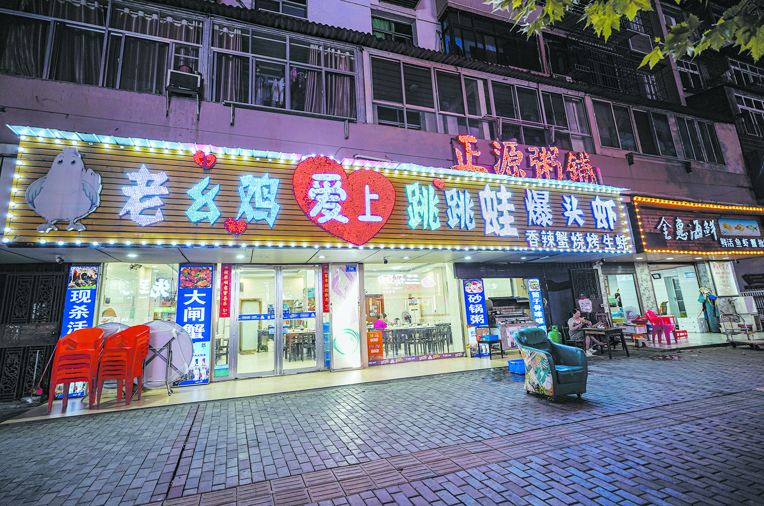 8月12日,夜幕降临,贺家土夜宵美食街灯火通明。 记者/刘震 摄