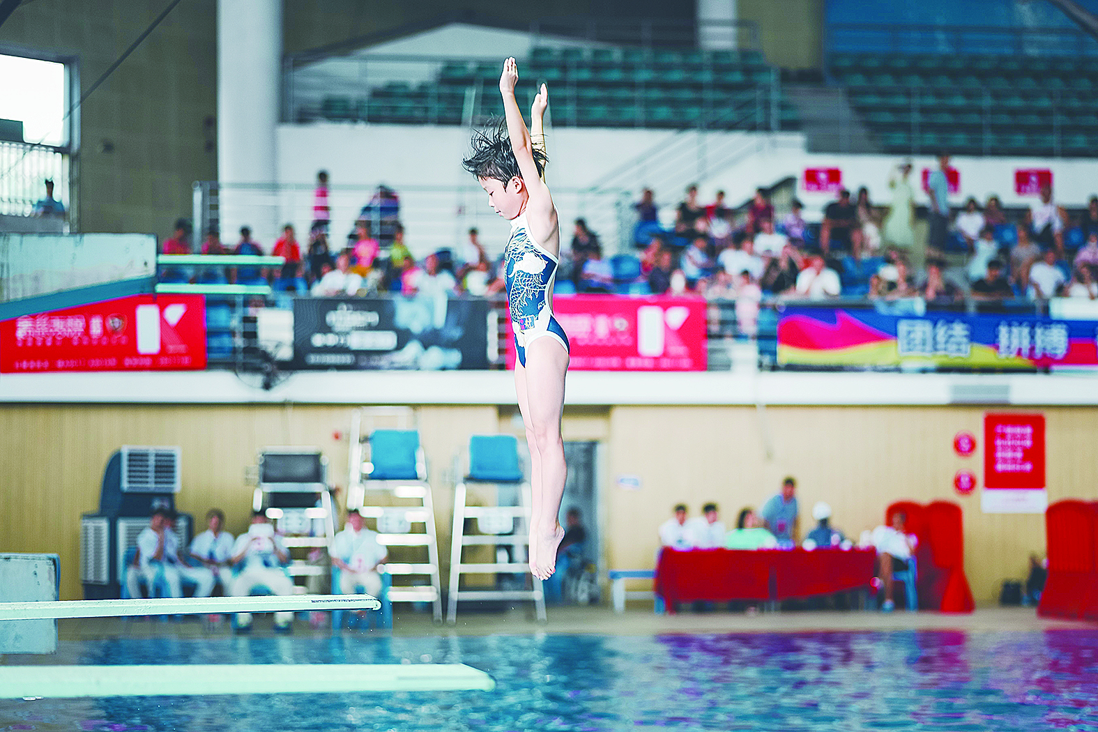 目前,“浩沙FAFA杯”2023年湖南省青少年跳水锦标赛正在市全民健身服务中心游泳馆举行,来自湖南省各地的66名青少年运动员各展身姿,上演着一场场精彩的“水花消失术”竞技,赢得了现场观众的阵阵掌声。株洲跳水队已斩获7枚金牌,金牌数暂列全省第一。