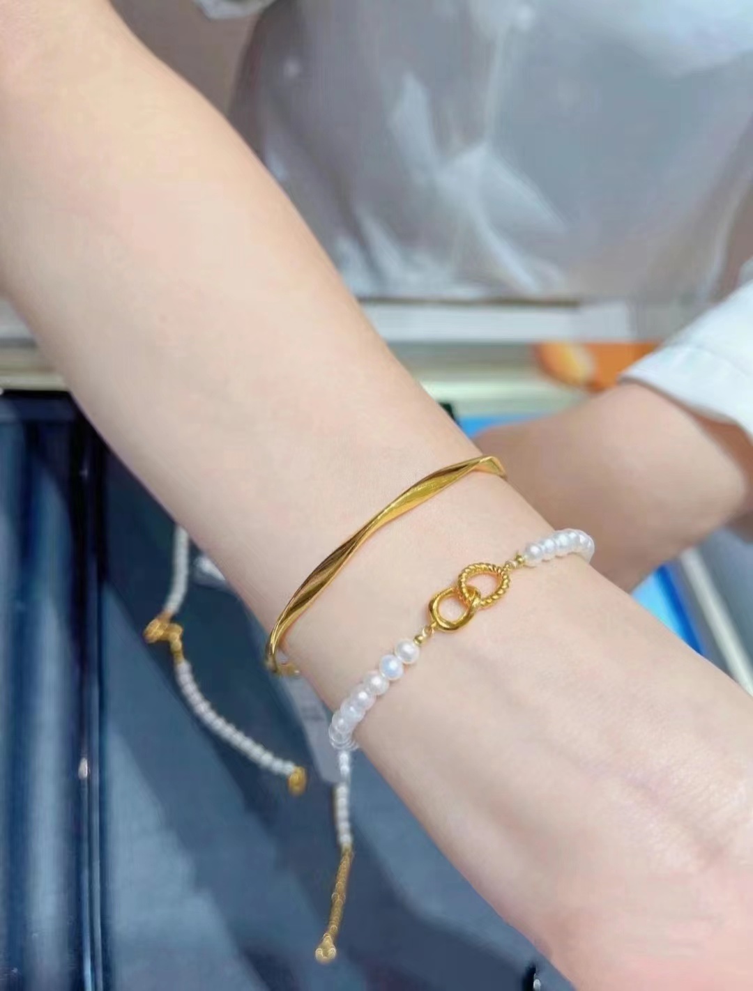 市民试戴黄金饰品 受访者/供图