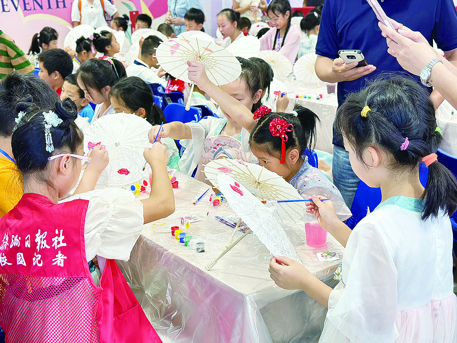 校园记者们参与投壶、射箭、油纸伞DIY等极具国风特色的游园项目韵味雅趣,现场欢乐无限。