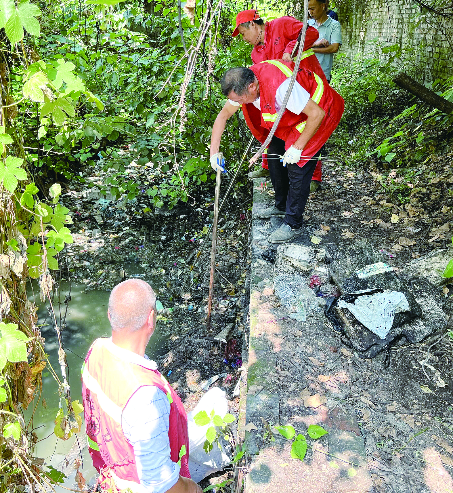 当天,龙泉街道办安排人员开始对渠道内的漂浮垃圾进行打捞。受场地等因素限制,机械设备无法进场,只能通过人工打捞的方式对渠道内漂浮垃圾进行清理。
