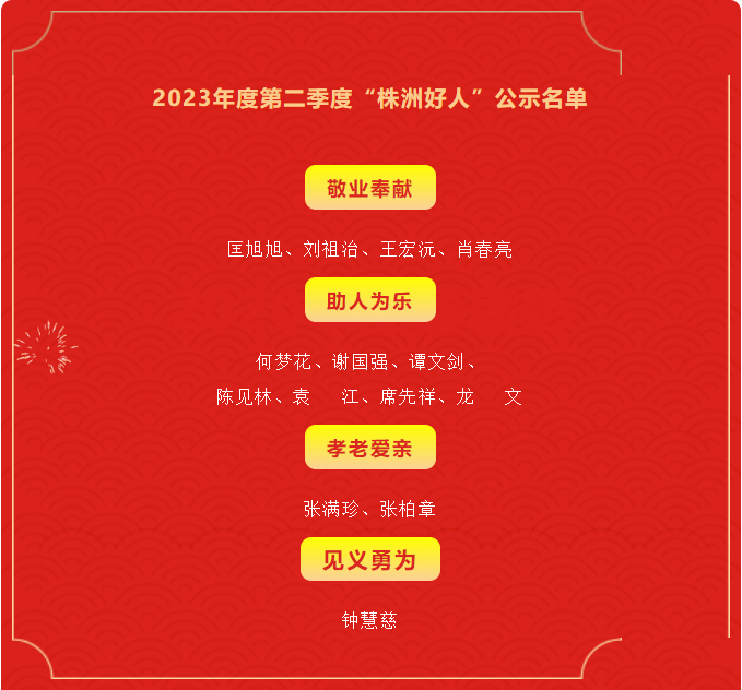 8月24日,2023年“株洲好人榜”第二季度榜单正式揭晓,14位身边好人光荣上榜。近日,记者走近部分“株洲好人”,了解他们的感人事迹。