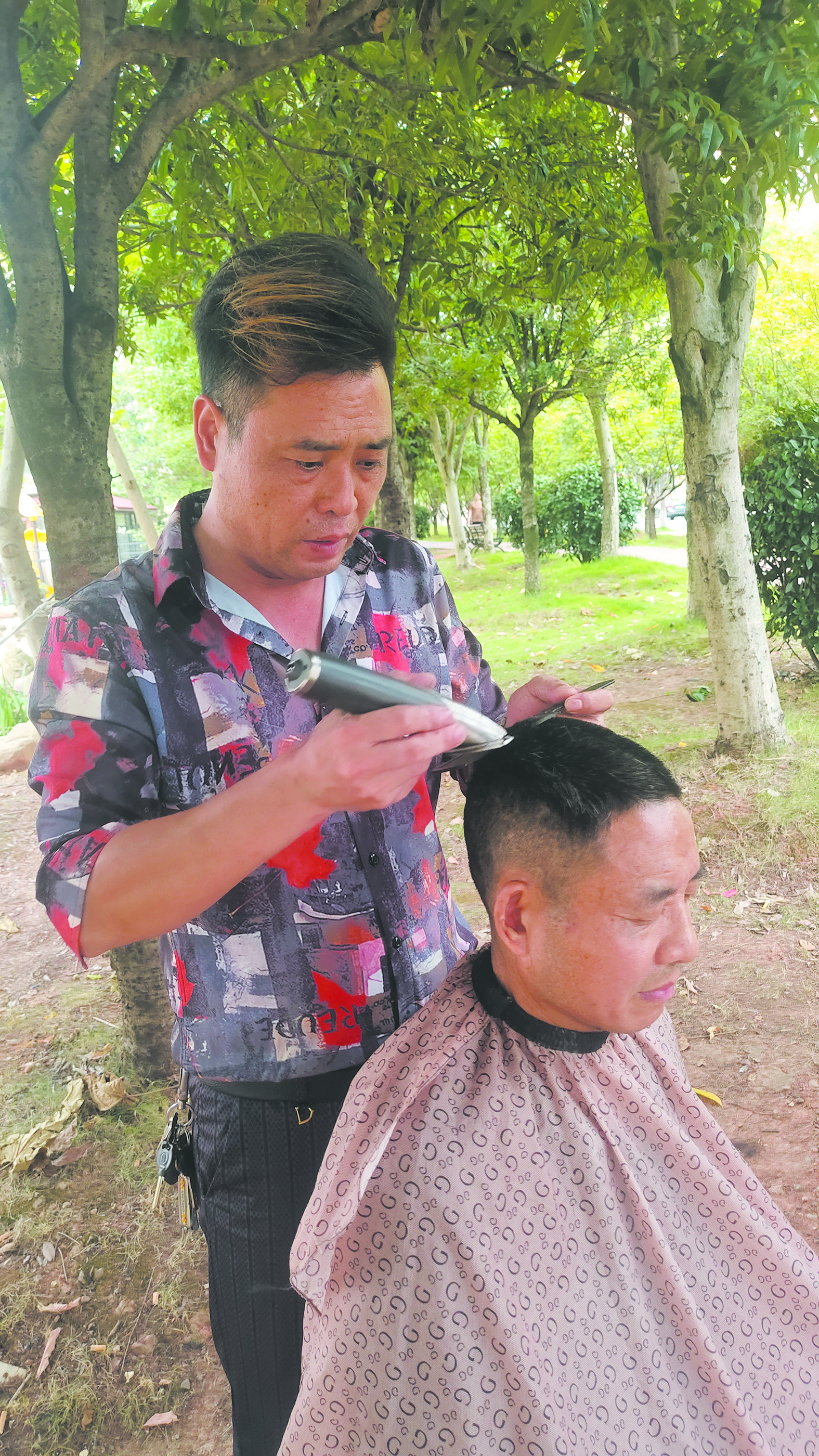 “别人20分钟才能做完的事,我3分钟搞定,又快又好,顾客肯定选我。”“黄毛哥”说,之所以快,是因为自己理发从来不走回头路,都是“一把过”。户外理发,冬天冷,夏天热,如果你剪不快、剪不好,哪怕不要钱,顾客都不会选择你。