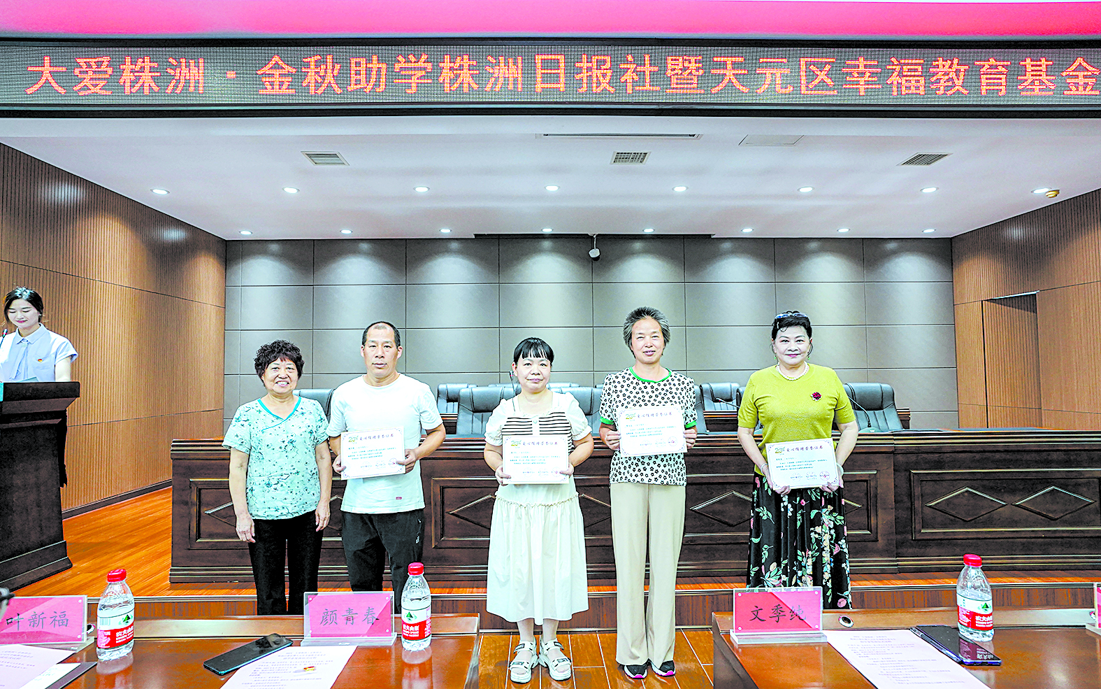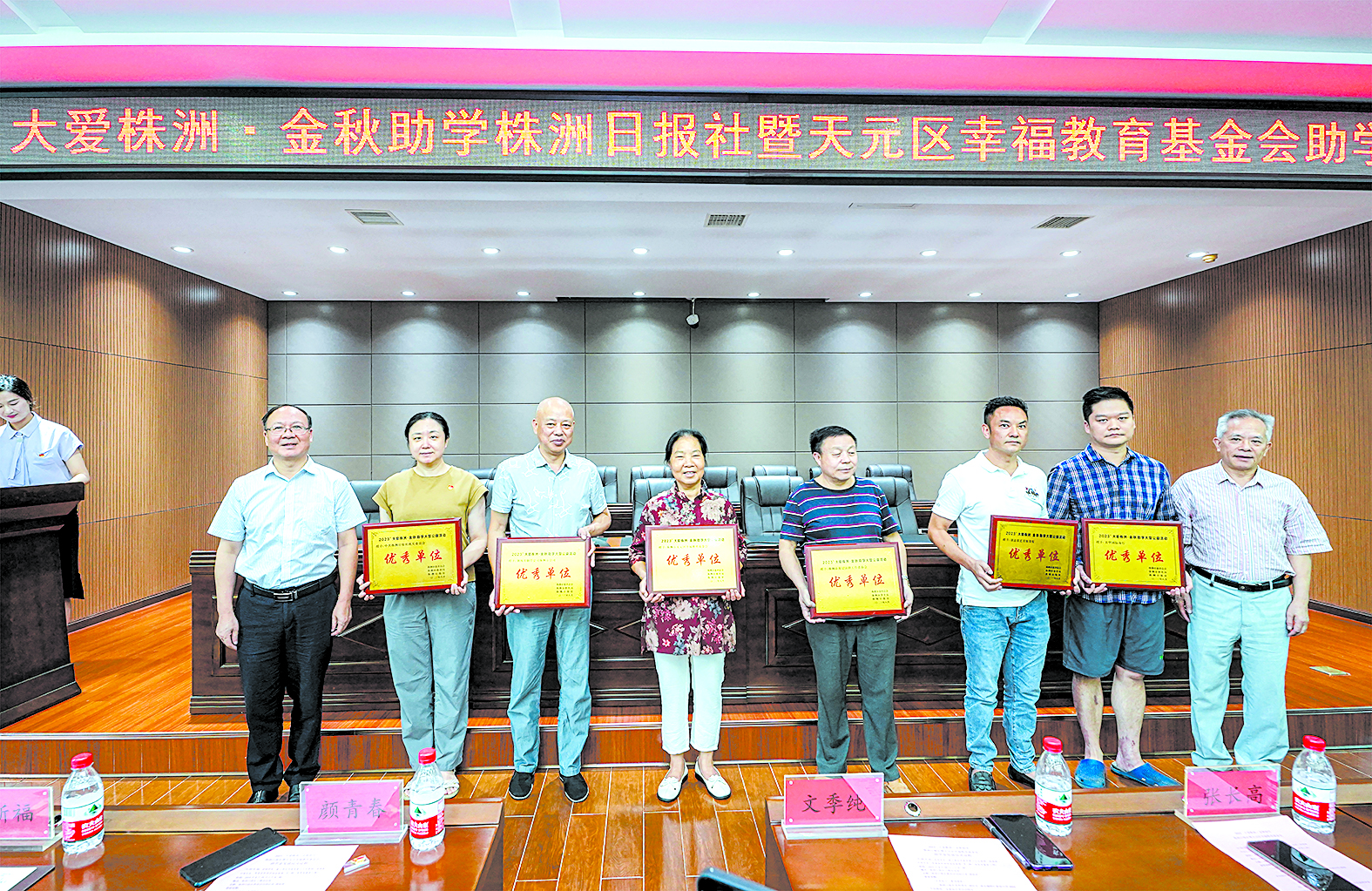 本报讯(株洲晚报融媒体记者/戴凛) 8月29日,2023年大爱株洲·金秋助学株洲日报社暨天元区幸福教育基金会助学金发放仪式在株洲日报社举行。现场,活动主办方向爱心单位和爱心人士发放了荣誉牌匾和证书,并为前来参会的学子发放助学金。