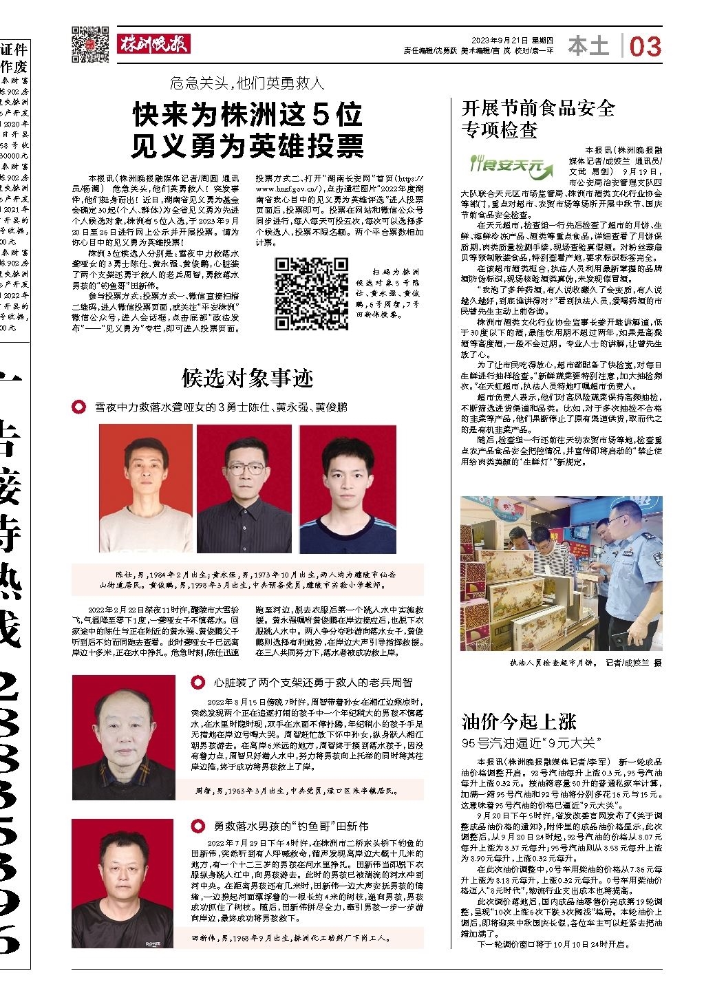 快来为株洲这5位 见义勇为英雄投票