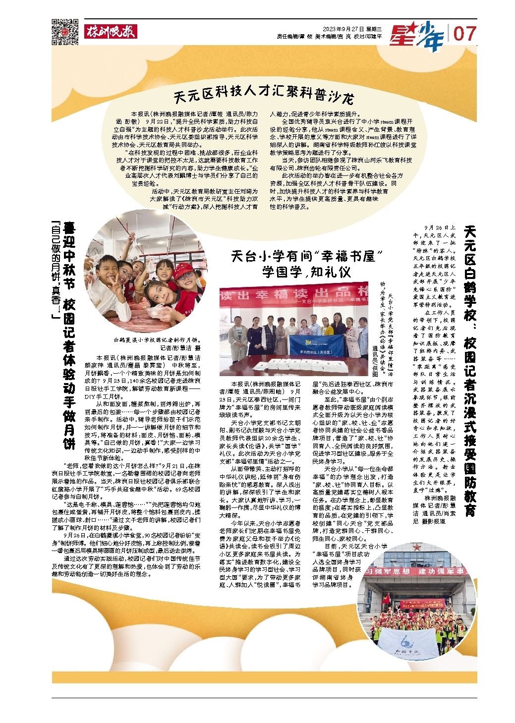 天元区白鹤学校:校园记者沉浸式接受国防教育