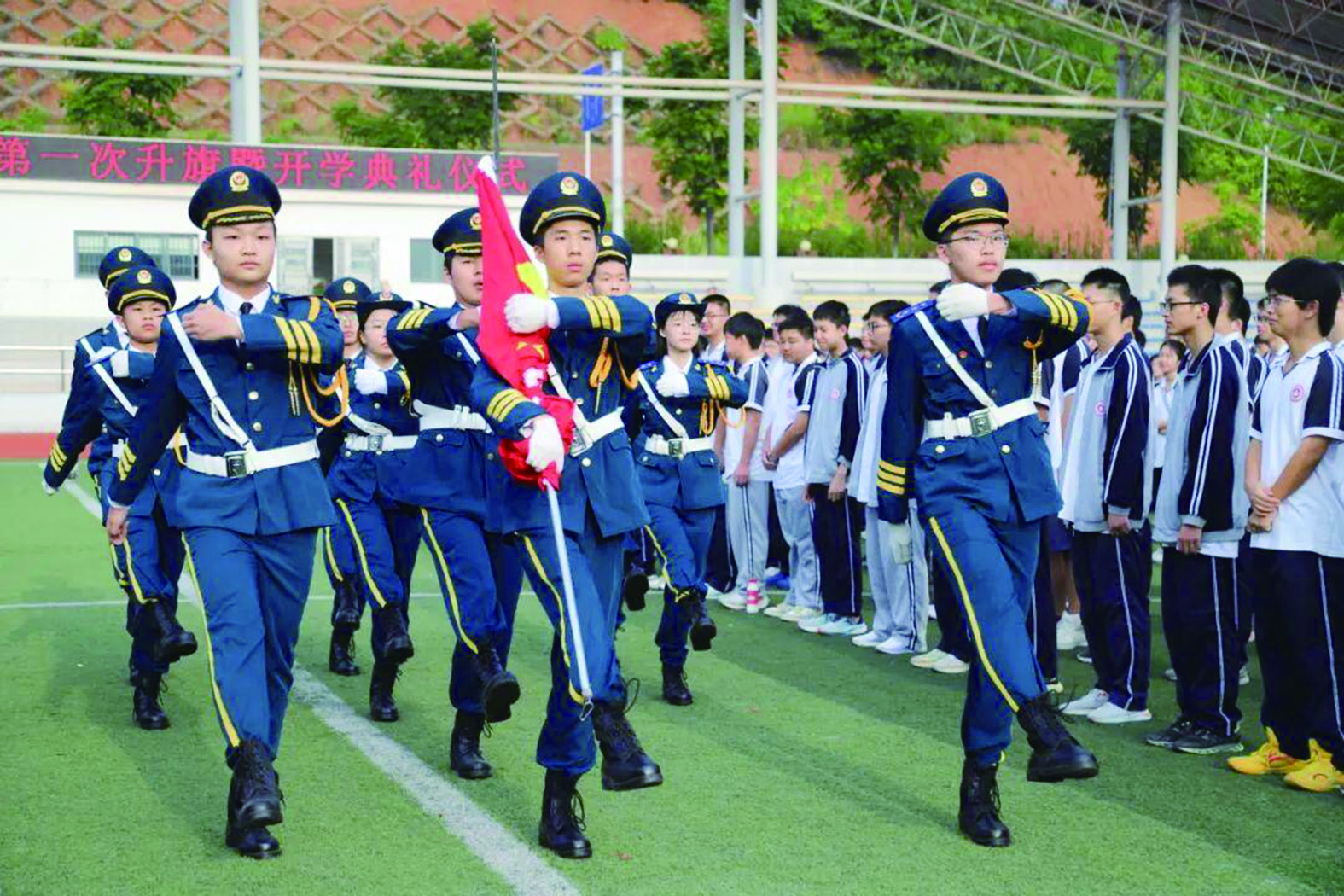 8月31日,株洲市二中2023年下学期开学典礼在田径运动场隆重举行。全体师生齐聚一堂,共同迎接新学期的到来。图为国旗班昂首阔步,彰显着二中少年的英姿飒爽与神采飞扬。