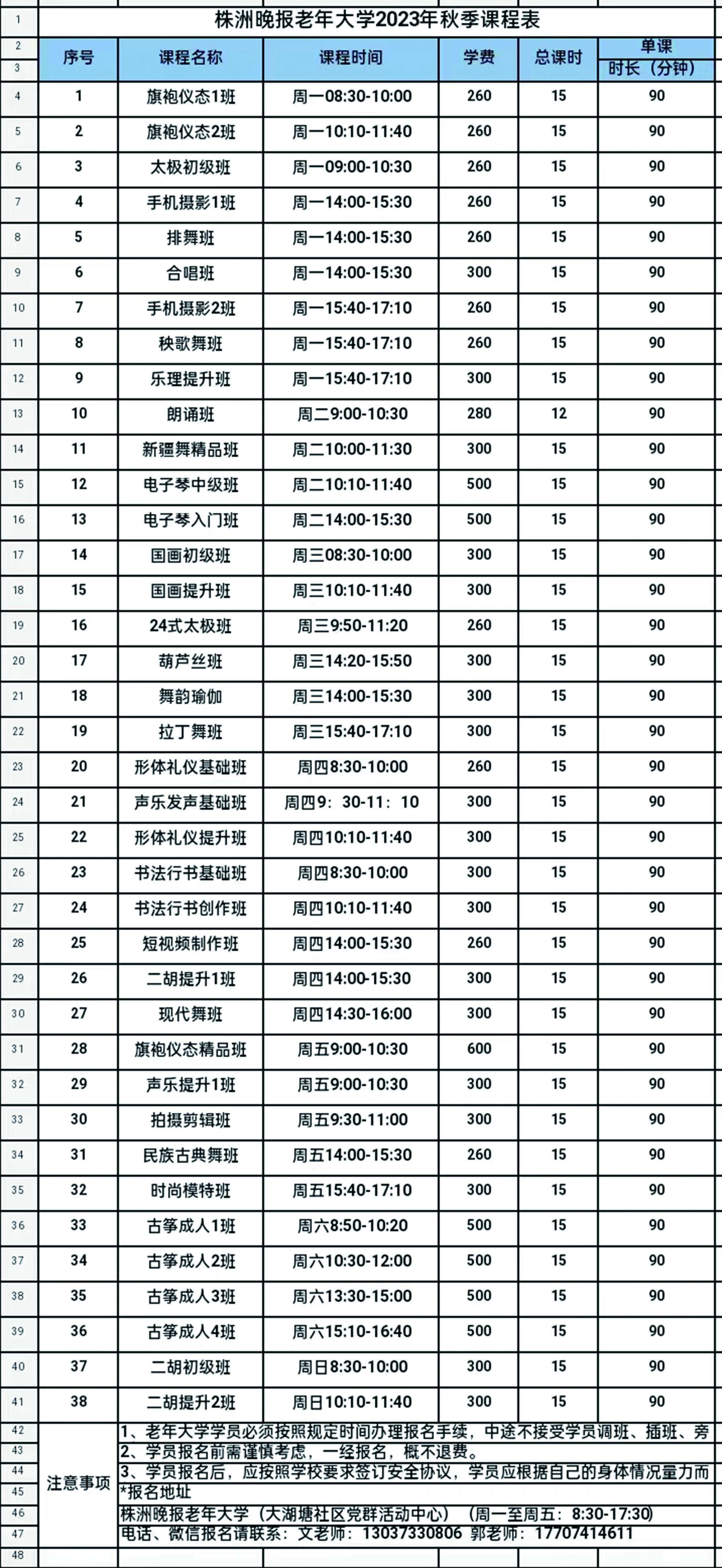 地址:株洲市天元区新闻路99号株洲晚报老年大学(大湖塘社区党群活动中心)